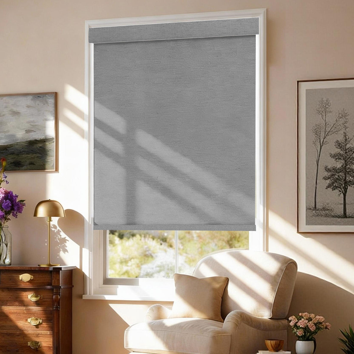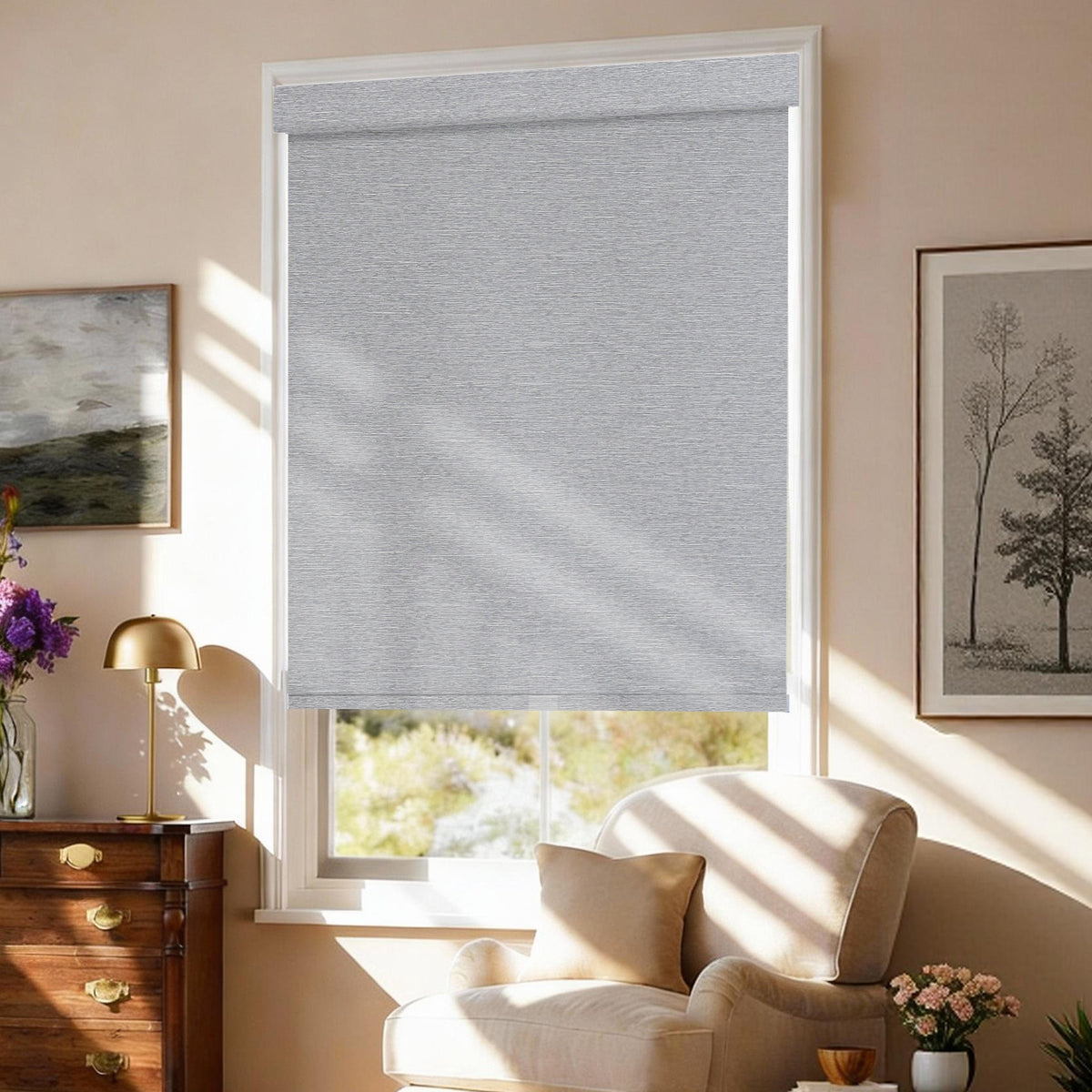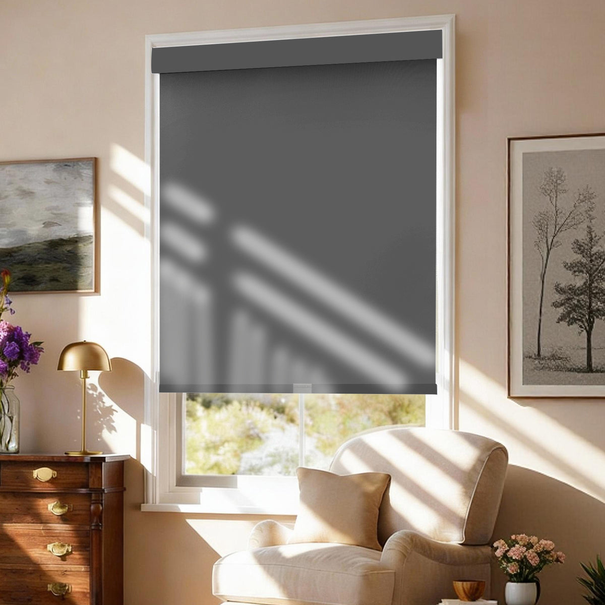 The privacy level depends on the fabric type: Room-darkening roller shades block full outside visibility for maximum privacy; light-filtering options let in soft light while keeping partial privacy. At night, minimal shadows may show through room-darkening fabrics, which is acceptable for most users.