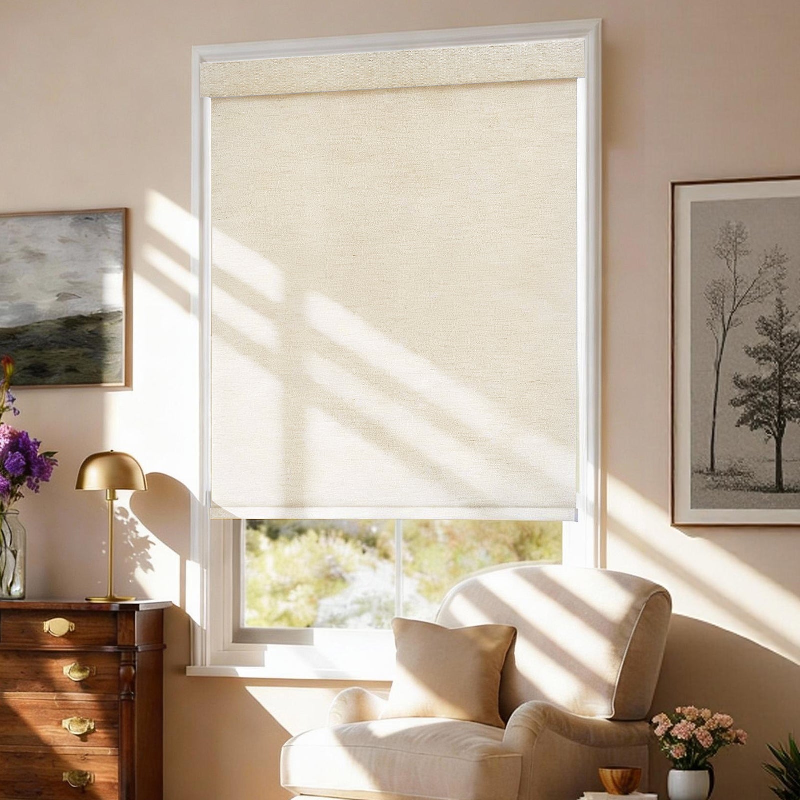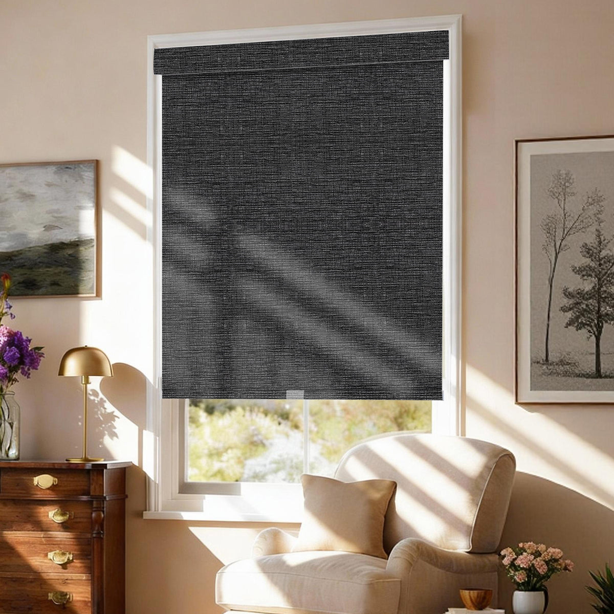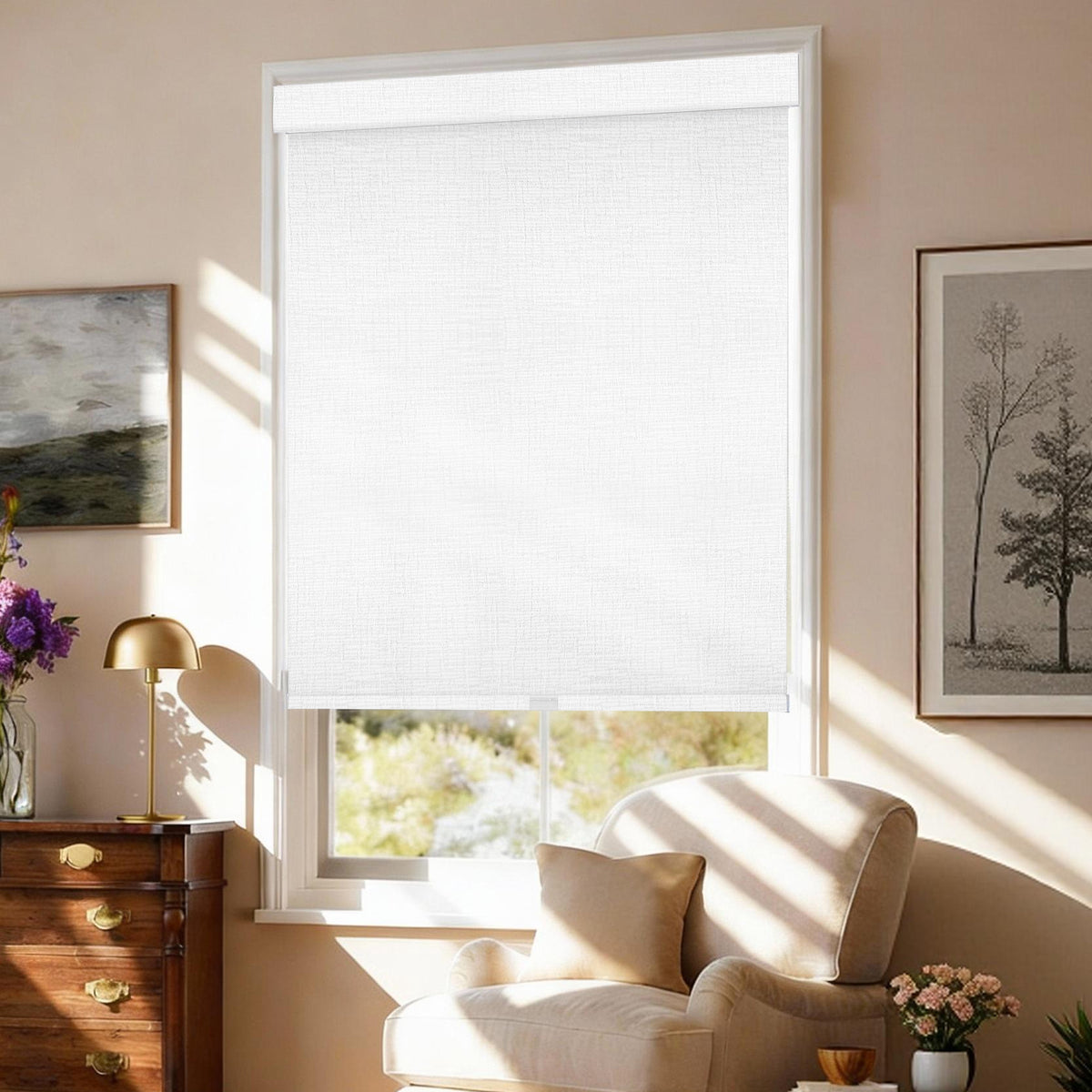 The privacy level depends on the fabric type: Room-darkening roller shades block full outside visibility for maximum privacy; light-filtering options let in soft light while keeping partial privacy. At night, minimal shadows may show through room-darkening fabrics, which is acceptable for most users.