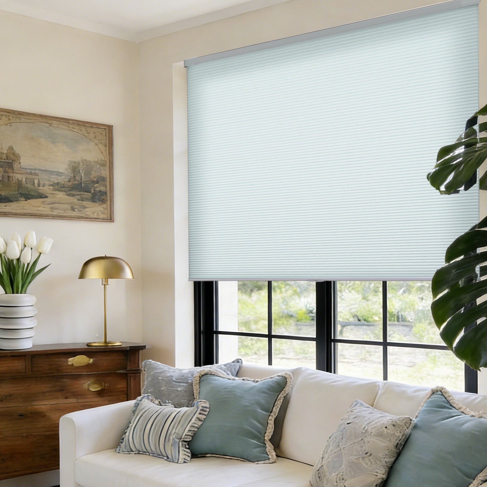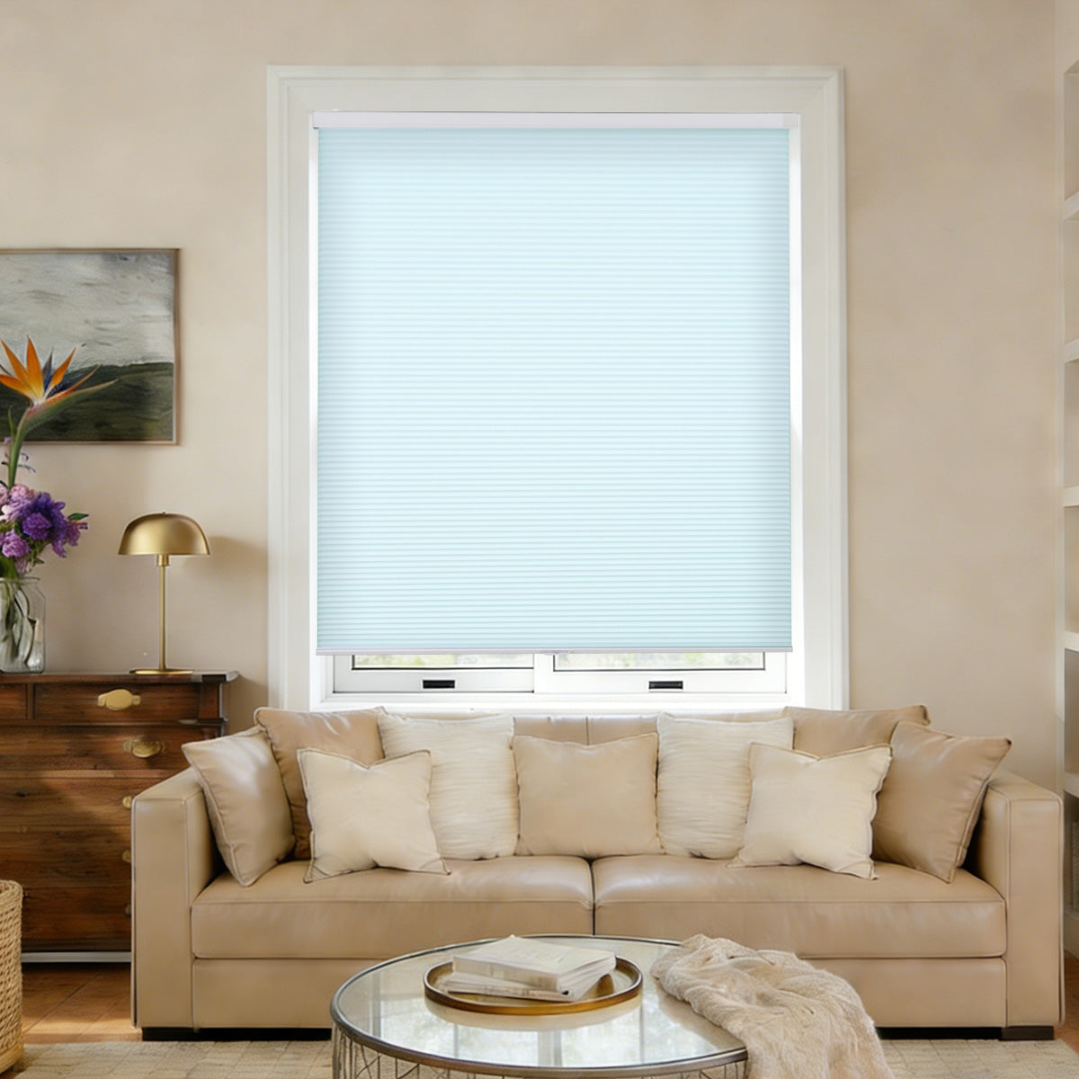 Create a serene, coastal-inspired atmosphere with AOSKY's premium light filtering honeycomb blinds in sophisticated blue tones. Our innovative cellular design allows natural light to gently filter through while delivering superior energy efficiency for year-round comfort.