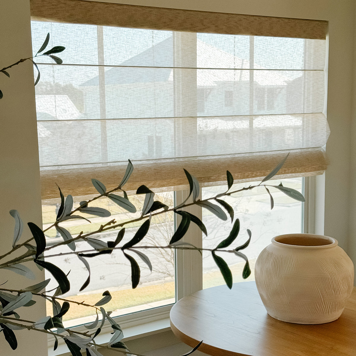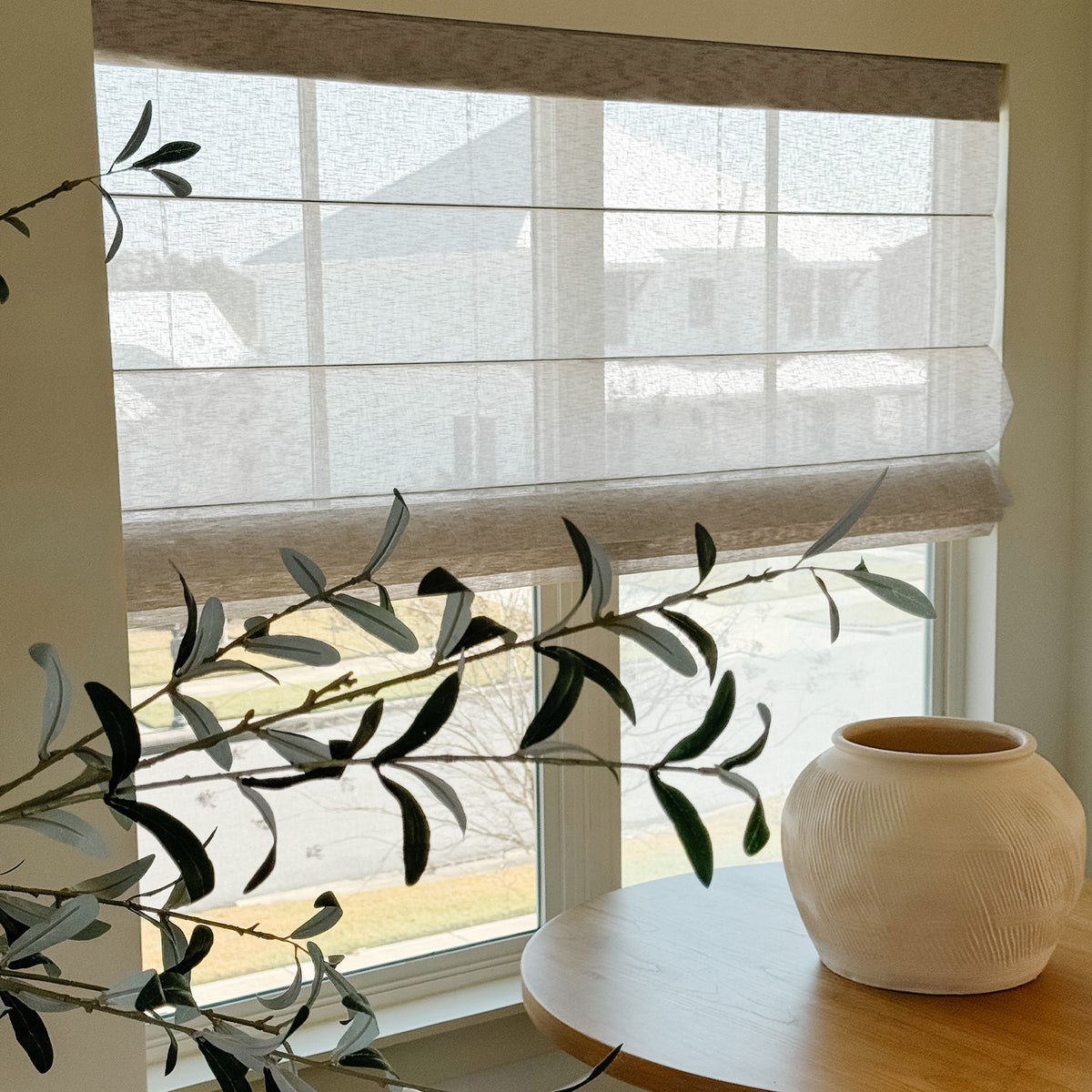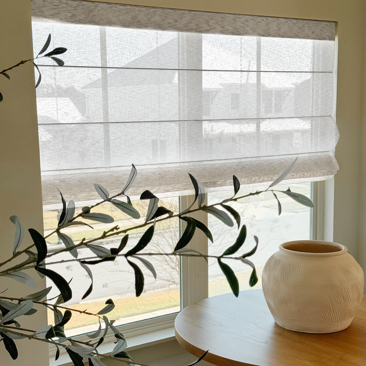 Balances gentle light filtration with soft privacy through its semi-transparent texture, crafted from premium eco-friendly fabric free of harmful substances, creating an elegant and safe atmosphere for your living room or bedroom.